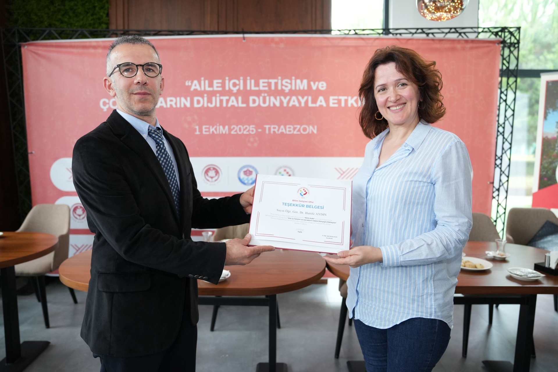 Etkinlik kapsamında Üniversitemiz Psikolojik Danışma ve Rehberlik Uygulama ve Araştırma Merkezi Müdürü Öğr. Gör. Dr. Hanife Aydın, Aile İçi İletişimde Dikkat Edilmesi Gereken Hususlar ve Çocukların Dijital Dünyayla Etkileşimleri konularında bilgi ve deneyimlerini dinleyicilerle paylaştı.