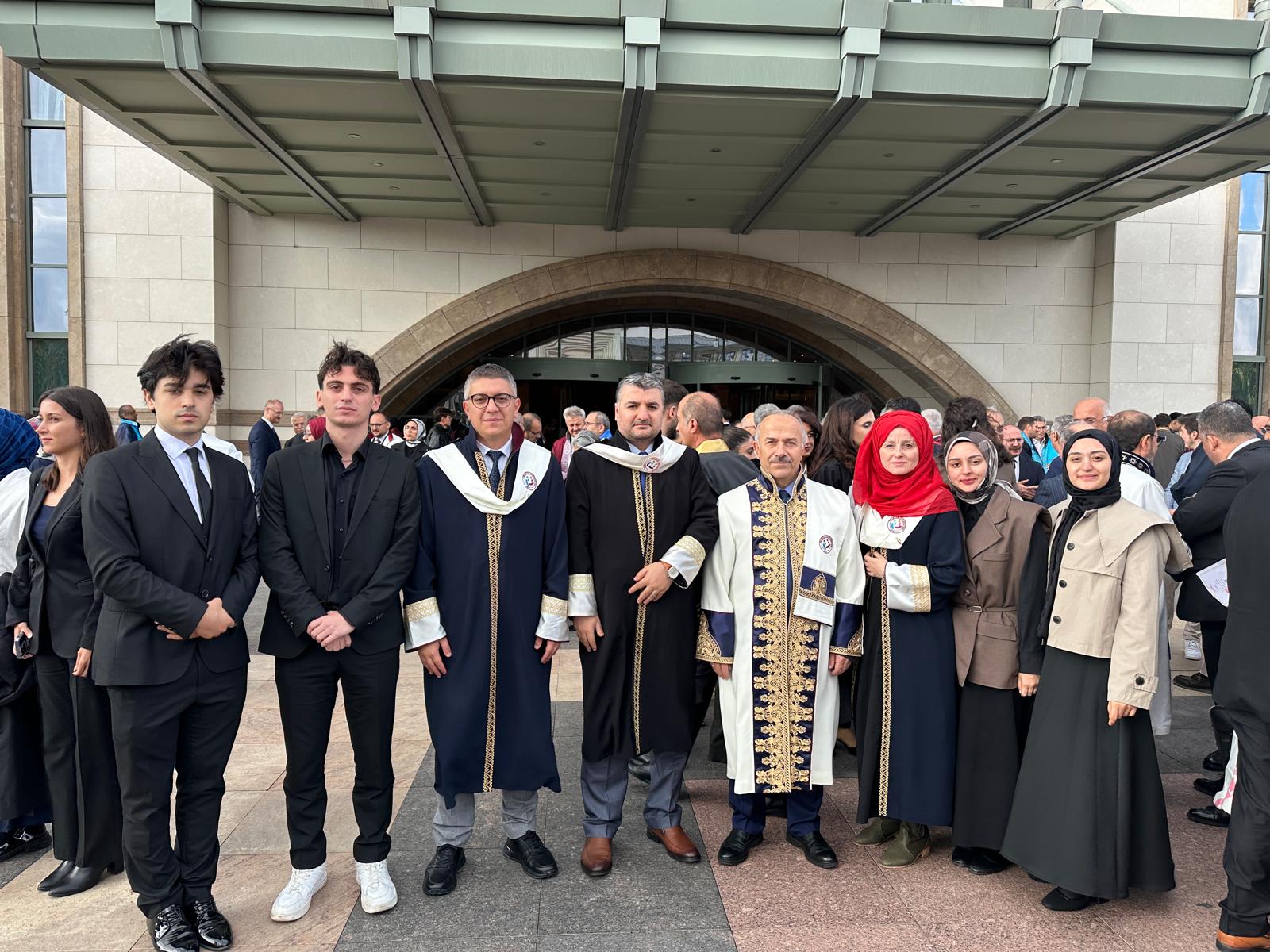 Geniş katılımlı törende Rektörümüz Prof. Dr. Emin Âşıkkutlu ile birlikte Hukuk Fakültemizden Dr. Öğr. Üyesi Yeşim Çelik, İlahiyat Fakültemizden Dr. Öğr. Üyesi Zahir Aslan ve Tonya Meslek Yüksekokulumuzdan Dr. Öğr. Üyesi Barış Türker Üniversitemizi temsil etti. Öğrencilerimiz M. Alihan Değer, M. Serkan Aygün, Betül Özdin ve Nesrin Arduç da 2025-2026 Akademik Yılı Açılış Törenine Rektörümüz ve hocalarımızla birlikte heyetimizde yer aldı.