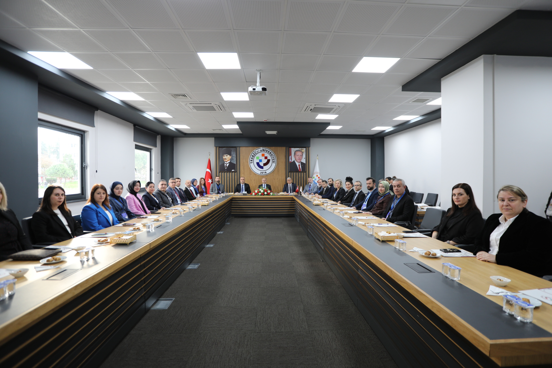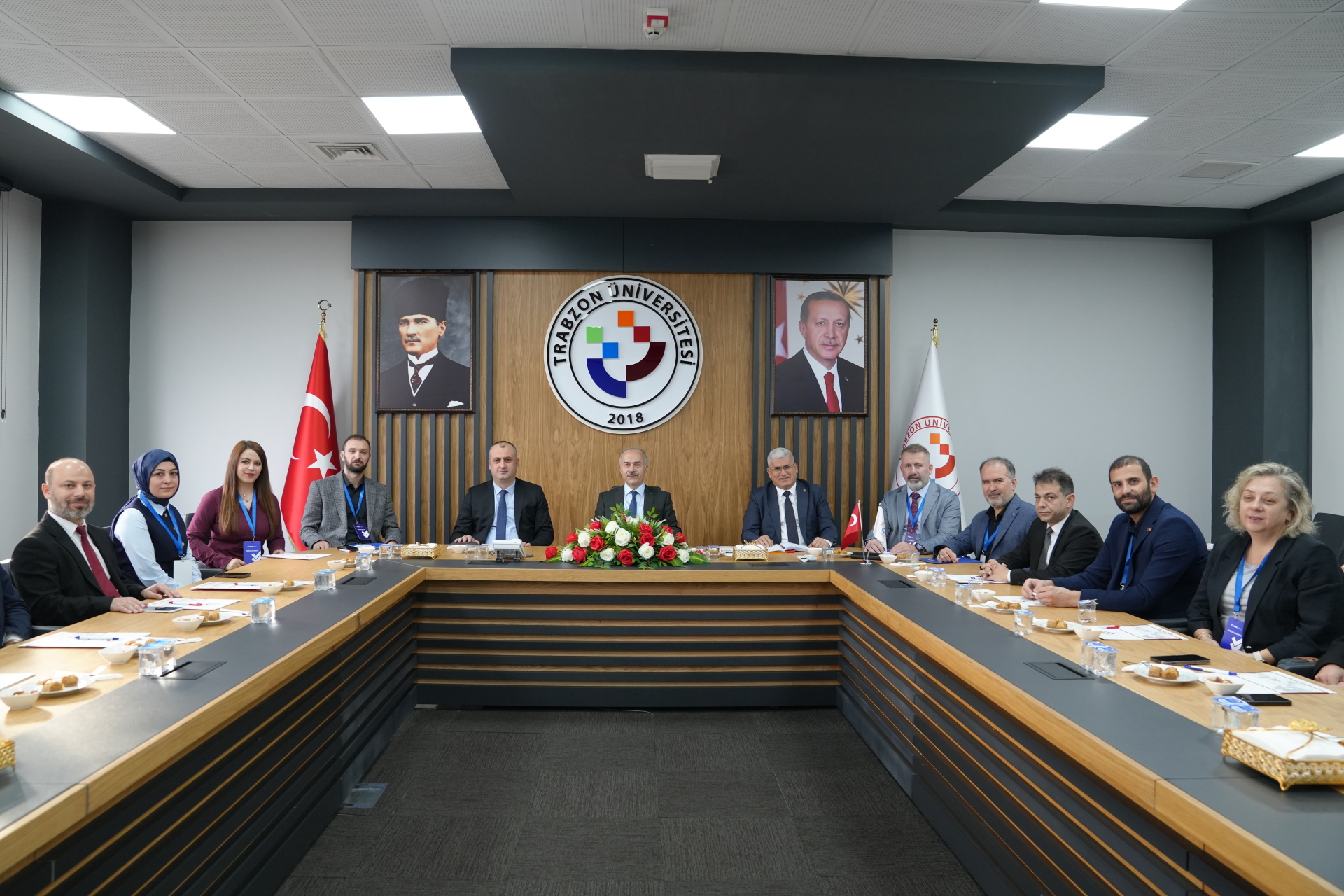 Saha değerlendirmesi süreci, değerlendirme takım başkanlarının takımlarıyla birlikte hazırladıkları çıkış bildirimlerini 12 Kasım 2025 Çarşamba günü Rektörlük Senato Salonunda yapılan toplantıda ayrı ayrı sunmalarıyla tamamlandı. Çıkış Bildirimi sunumu toplantısına değerlendirme takımı üyelerinin yanı sıra Rektörümüz Prof. Dr. Emin Âşıkkutlu, Rektör Yardımcımız Prof. Dr. Atilla Çimer, Genel Sekreterimiz Doç. Dr. Ufuk Töman, Kalite Koordinatörümüz Doç. Dr. Selcen Sarı Aytekin, Beşikdüzü Meslek Yüksekokulu Müdürümüz Dr. Öğr. Üyesi Ertuğrul Karoğlu, Çarşıbaşı Meslek Yüksekokulu Müdürümüz Dr. Öğr. Üyesi Lokman Şılbır, Tonya Meslek Yüksekokulu Müdürümüz Dr. Öğr. Üyesi Galip Usta, müdür yardımcıları, meslek yüksekokulu öğretim elemanları ve sekreterleri ile Kalite Koordinatörlüğü öğretim elemanları katıldı. Takım başkanları tarafından çıkış bildirimlerinin okunmasından sonra çıkış bildirimi dosyalarının Rektörümüz Prof. Dr. Emin Âşıkkutlu ve Meslek Yüksekokulu Müdürlerine ayrı ayrı takdimini takiben fotoğraf çekimi ile toplantı sona erdi.