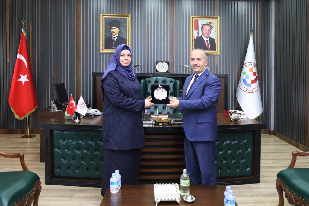 Diyanet İşleri Başkan Yardımcısı Prof. Dr. Huriye Martı, Üniversitemiz Rektörlüğüne yeniden atanan Rektörümüz Prof. Dr. Emin Aşıkkutlu’ya hayırlı olsun ziyaretinde bulundu.